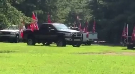 Racial tensions flared in Georgia when a group of pickup trucks flying American and Confederate flags drove by the birthday party of a black kid in Douglasville, west of Atlanta.
